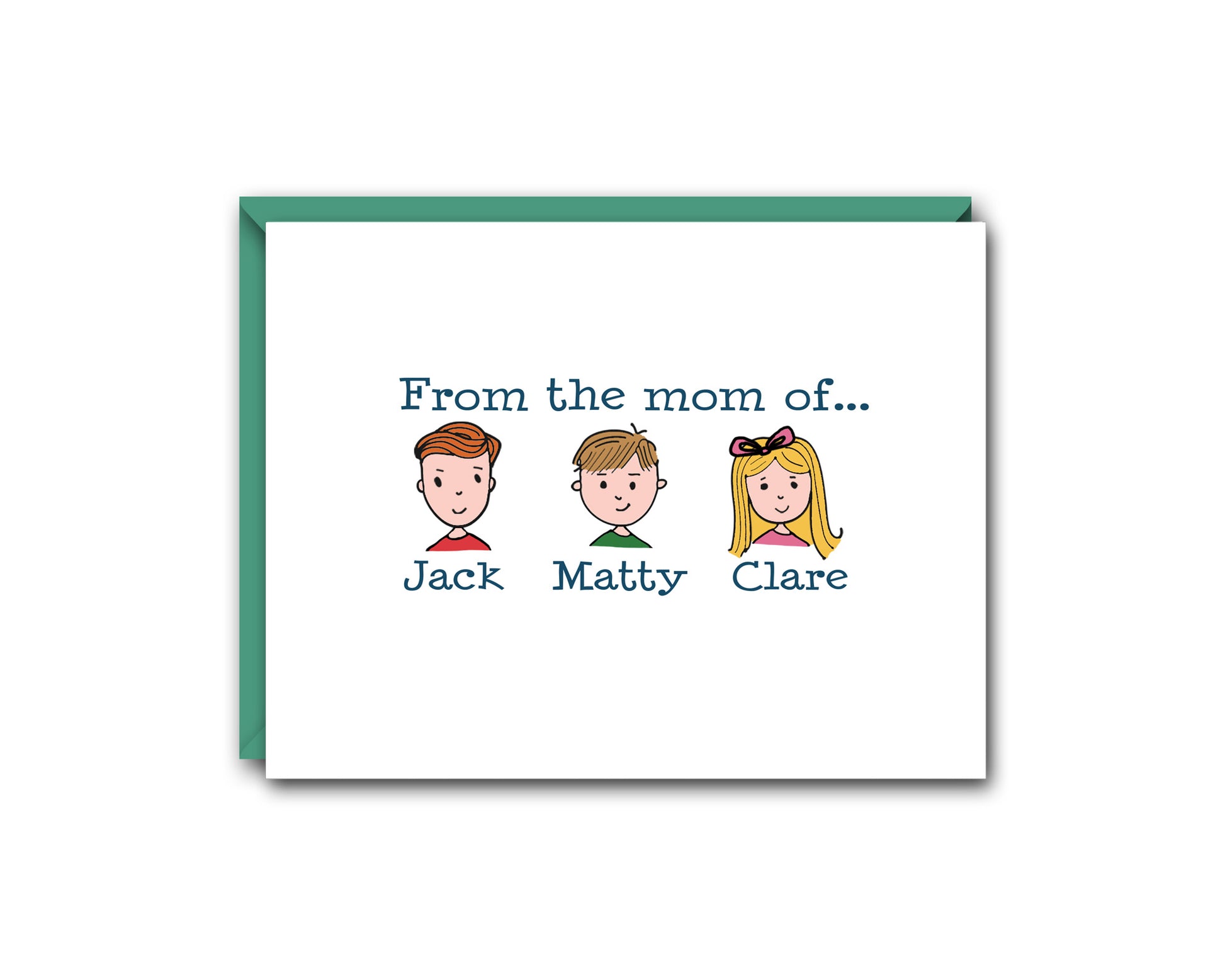 FROM THE MOM OF... THREE CHILDREN PERSONALIZED NOTE CARD SET